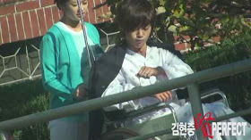 Next both of them push the wheel chair backwards, SM help HJ with this jacket, again both were chatting non-stop XD